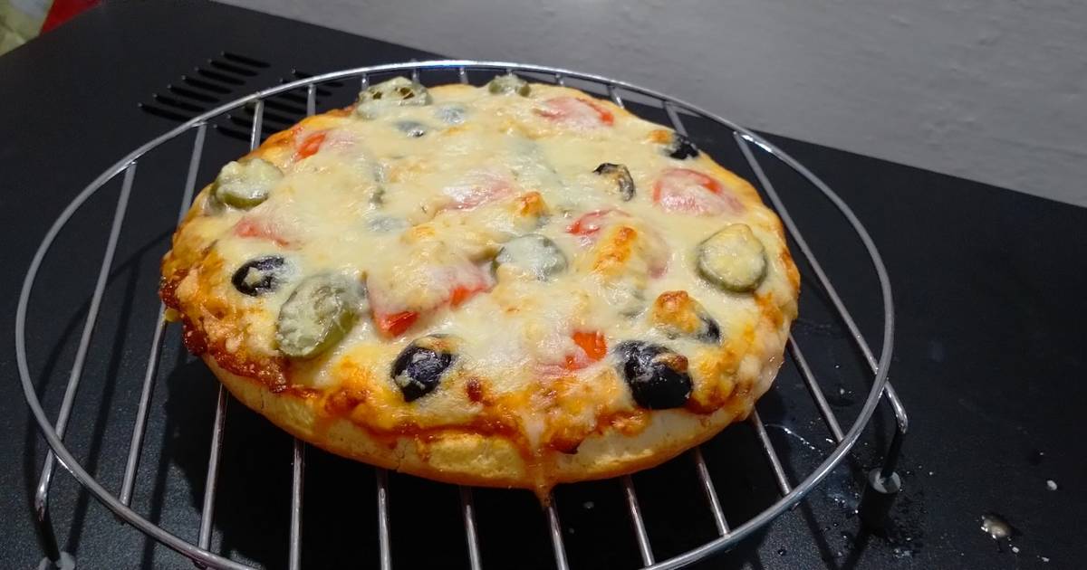 9. ضعي البيتزا في الفرن لمدة 30 دقيقة أو حتى تصبح ذهبية اللون.