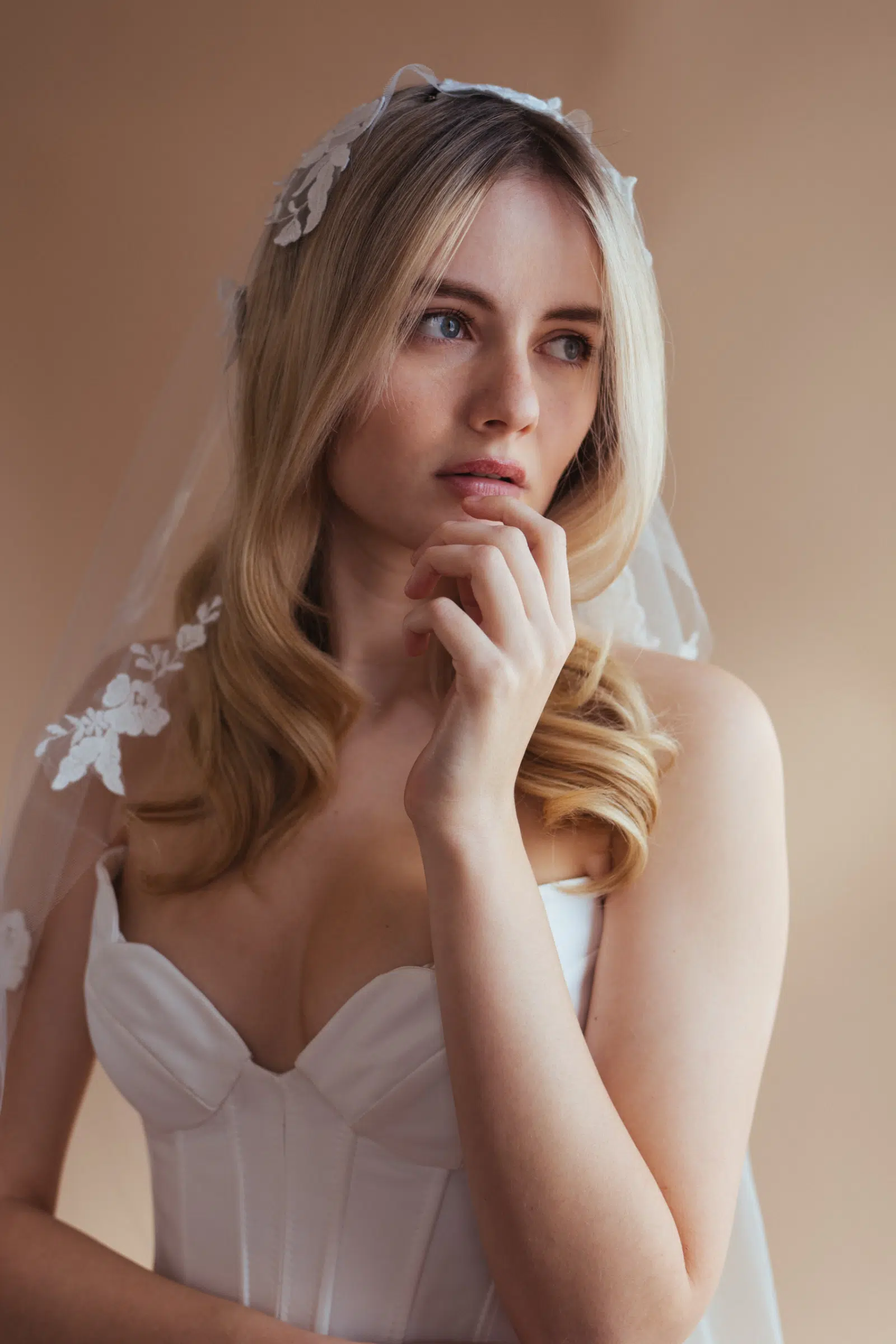 تسريحات شعر مع طرحة للعروس الرومانسية: