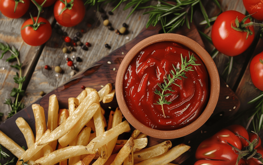 الكاتشب هو صلصة تعتمد على الطماطم وتستخدم عادة لتزيين الأطعمة مثل البطاطس المقلية أو الهوت دوغ، يحتوي هذا الطعام الشائع أيضًا على مكونات أخرى بجانب مركز الطماطم، مثل الخل، الملح، التوابل، وأحيانًا شراب الذرة عالي الفركتوز، ويُستخدم أيضًا مصطلح “كاتشب” في بعض الأحيان، على الرغم من أن “الكاتشب” هو الاسم الأكثر شيوعًا في أمريكا الشمالية، هذه هي النسخة المستخدمة من قبل أشهر العلامات التجارية، وقد يكون الكاتشب مصدرًا للسعرات الحرارية المضافة، السكر، والصوديوم، ولكن نظرًا لأنه يُستهلك عادة بكميات صغيرة، يمكن تضمينه في النظام الغذائي الصحي.